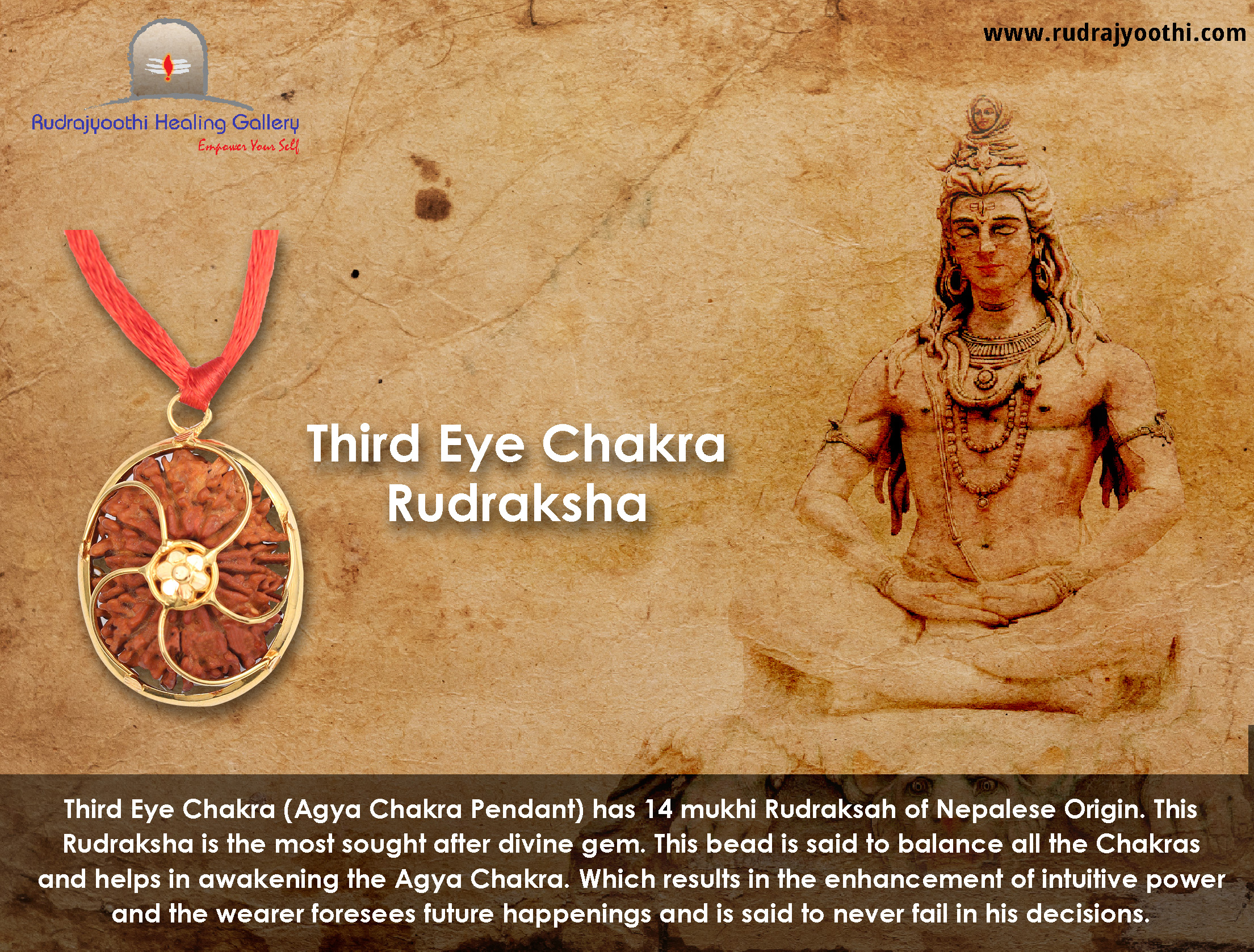 It is also known as Agya Chakra Pendant. According to chakra energy this pendent helps to activate Ajna Chakra. It is pedant of 14 mukhi Rudraksh. It gives foresight to the wearer. It awakens sixth sense, intuition power by which the wearer can foresee the future happenings. This helps the wearer to decide on his course of action against all. Calamities, miseries & worries.