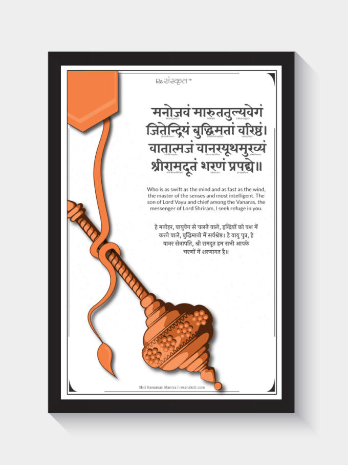 The son of Lord Vayu and chief among the Vanaras, the messenger of Lord Shriram, I seek refuge in you.